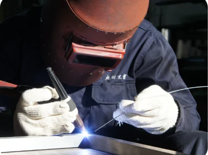 丸田工業は、単品・小ロット品、試作品のものづくりに特化しています。弊社の技術者は全員が図面一枚から曲げ、溶接、仕上げまで従事するオールマイティプレイヤーです。